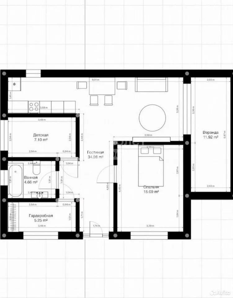 Современная планировка: Просторная и светлая кухня-гостиная, уютные спальни.