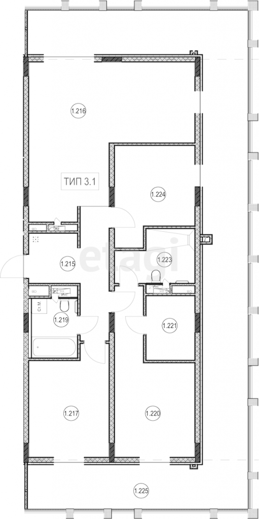 3-комн. квартира, 96.4м²